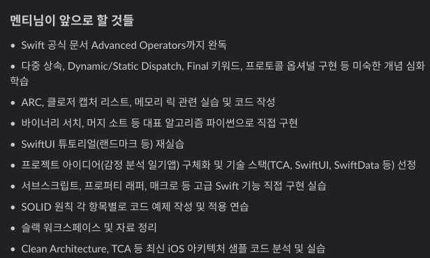 어떤 부분을 보완해야 할 지 명확해졌고, 이를 기반으로 iOS 플랫폼에 더 깊은 학습을 해야겠다고 생각했다.