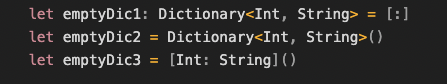위와 같이 빈 딕셔너리(Dictionary)를 생성하실 수 있습니다.
