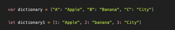 이때, 키(Key)값은 유일(Hashable)해야 하며, 키(Key)와 값(Value)은 각각 동일한 타입의 데이터를 담을 수 있습니다.